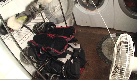 I highly recommend wearing something between you and your hockey equipment as it makes step two a lot easier. Now that you have played a good game of hockey your hockey equipment will be damp. You need to air it out otherwise it will stink! Airing out your hockey equipment is one of the most important steps here. Here is what I do