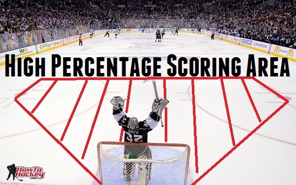 While there is definitely a “high percentage scoring area” in hockey (as seen below), that area is actually quite sizable. You’ll need to familiarize yourself with many different spots within that area, as well as beyond that area to really unlock your full shooting potential.